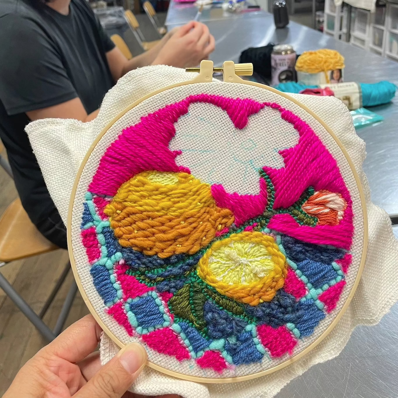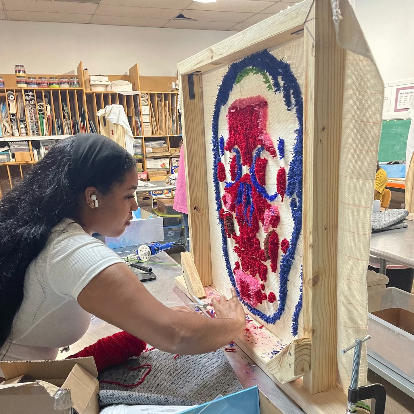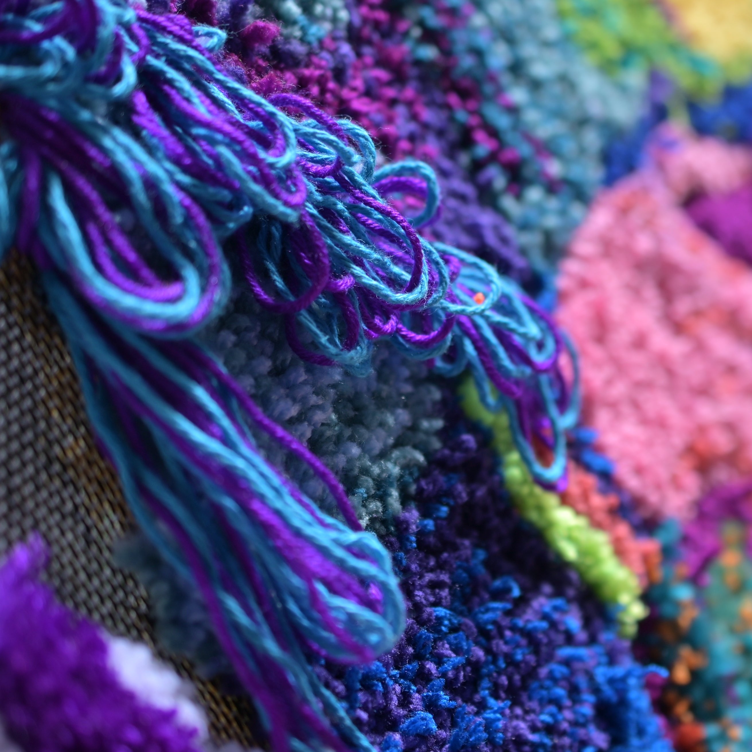 Beginners will practice various tufting techniques to create three different sizes of works: 6" × 6", 12" × 12", and 29" × 29”.