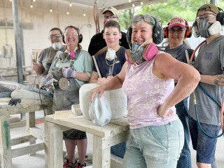 Welcome to the ancient yet surprisingly modern world of stone carving. First-time students will experience the excitement of a Michelangelo experience, learning about stone, carving technique and will be starting off with traditional hammer and chisel just like the old masters used. Returning Students will experience a continuation of traditional tools while adding the modern element of pneumatic and electric carving tools. Advanced students will be encouraged to push the boundaries of their imaginations and experience. All students will learn aspects of sculpture design while working on their own original designs.